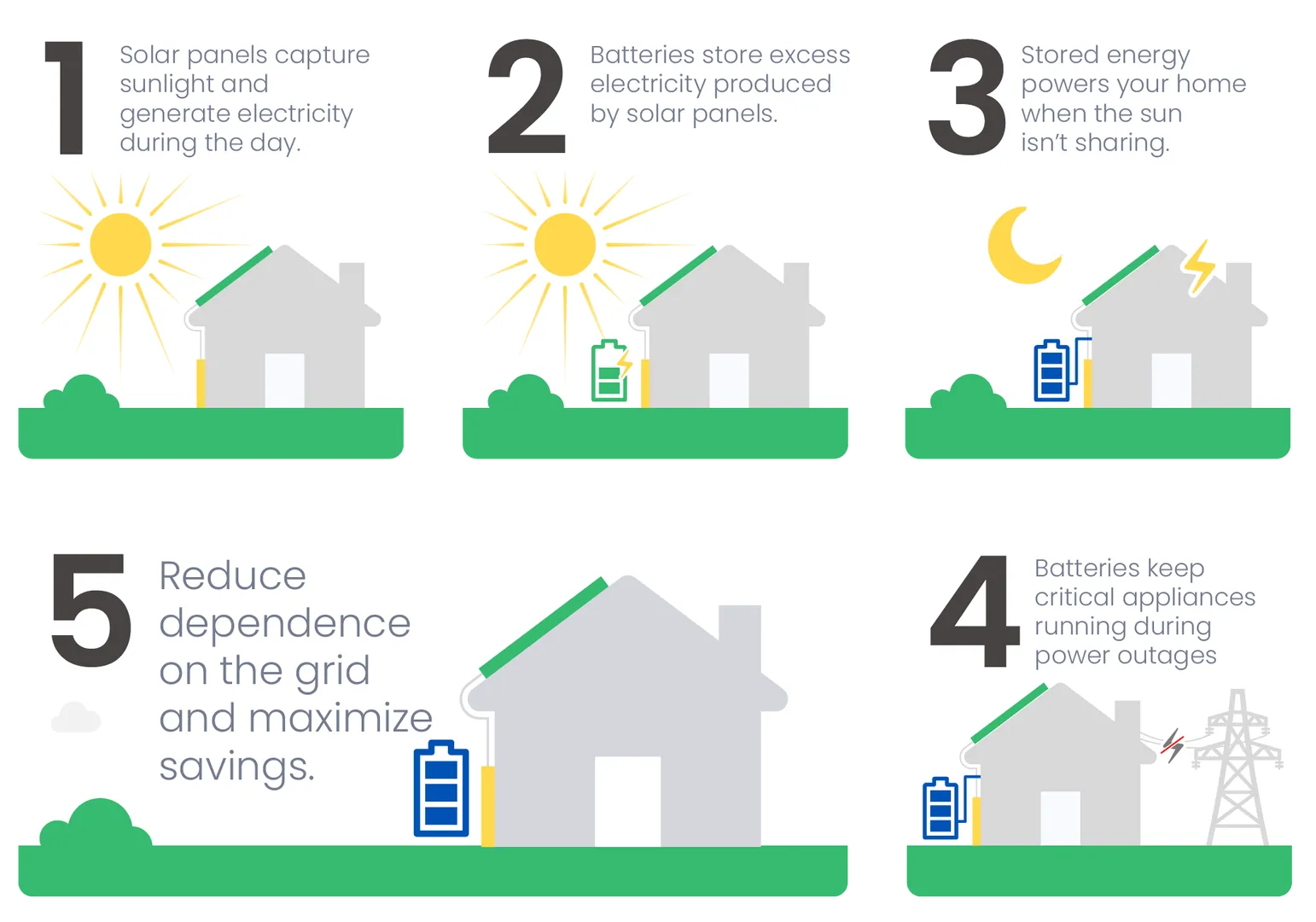 A solar battery gives you greater energy independence, reduces reliance on the grid, and maximizes your savings by ensuring none of your solar power goes to waste. With a battery, your home or business stays powered and efficient, day and night.